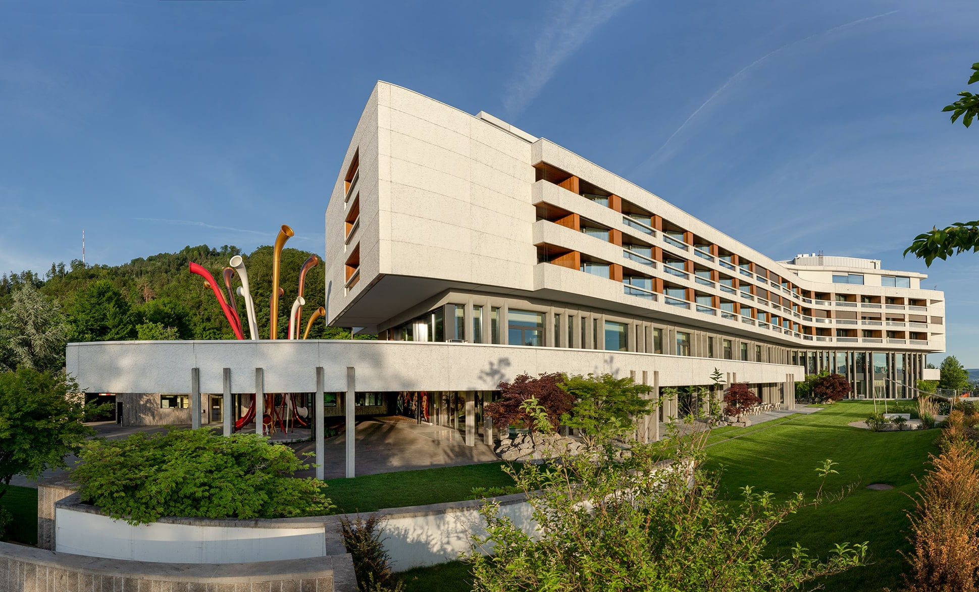 FIVE Zurich is located on the slopes of the Uetliberg, overlooking the city. It is only 3 km from Zurich city centre and a 20 minute drive from Zurich Airport, with direct access to public transport just a few minutes’ walk away.